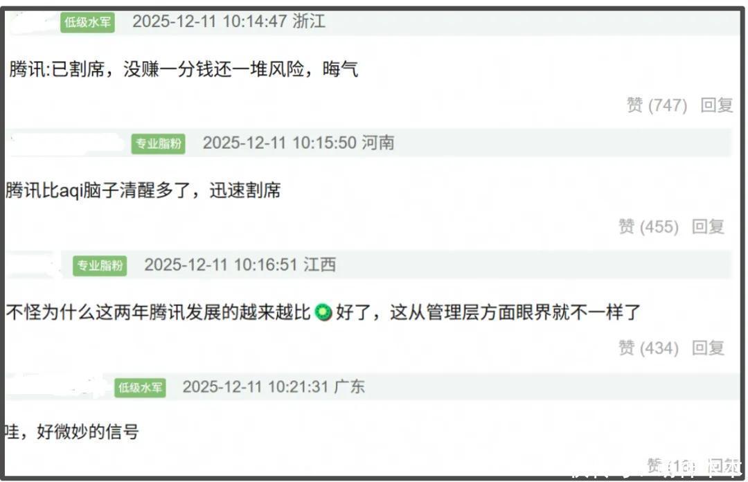 鹅厂这番迅速割席的操作很快引发热议,在很多人看来,鹅厂比桃厂清醒多了。面对风险艺人,鹅厂迅速做出了割席的行为,桃厂却还在用各种方式试图挽救风险。这两年鹅厂的发展比桃厂好许多,也许就是因为管理层眼界不一样吧。与此同时,大厂割席的行为也像是一个微妙的信号,虞书欣的处境可能越来越艰难了。